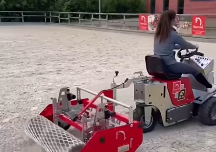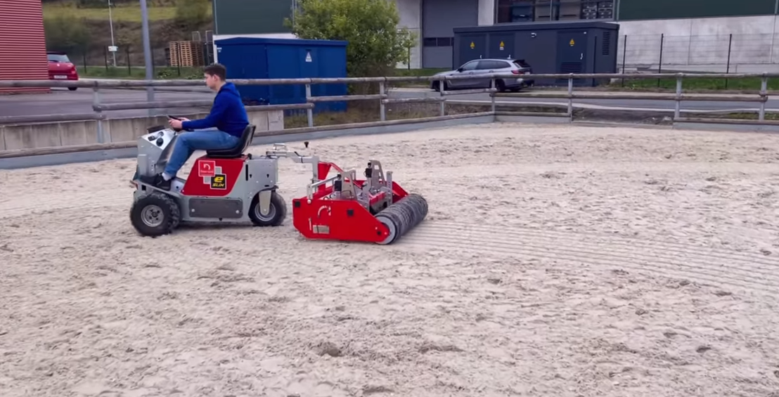 Serienmäßig ist der floor-care E-Slim mit einem Gitterwalzen-Planer ausgestattet. Die bei uns üblichen 3 Reihen Federzinken werden mit einem federgelagerten Glätterblech abgerundet. Optional kann der Bahnplaner mit einer Farm-Flex-Walze ausgestattet werden. Hufschlagräumer sind natürlich ebenfalls möglich.