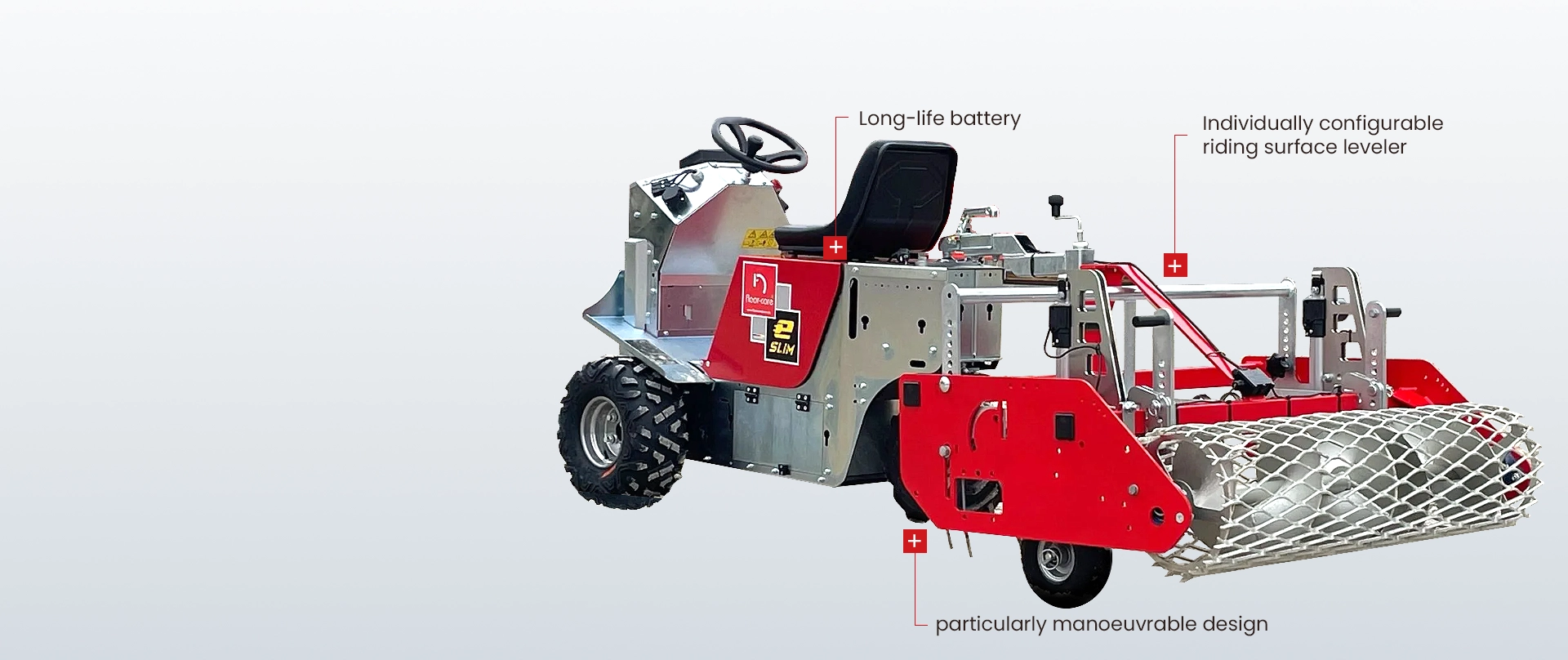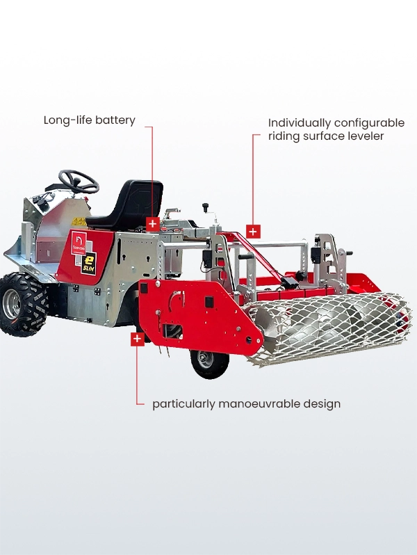 The 100% electric E-Slim replaces a quad or tractor. With our latest product, you get a solution that is perfect for tight spaces. The long-lasting battery is sufficient for several grooming passes. The operation is deliberately kept simple.