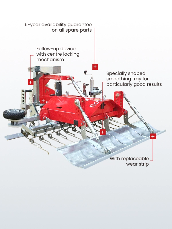 The shield of the TRAIL is adjustable in inclination and – like the whole arena groomer – adaptable to your wishes.