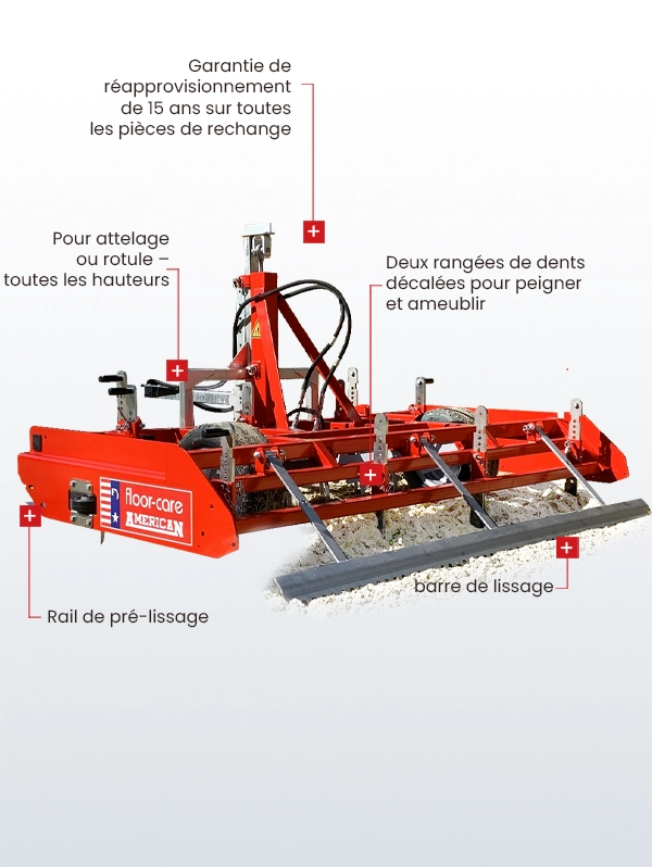 - Avec la lame de pré-nivellement, toutes les irrégularités sont pré-lissées.