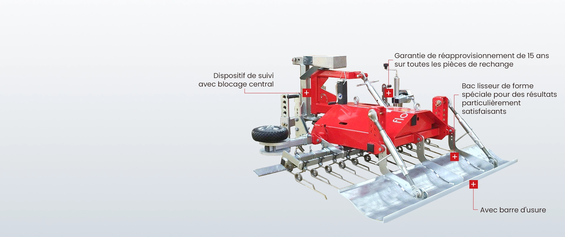 Votre sable d’équitation est guidé sous le bouclier de forme spéciale et ainsi comprimé. Cela nous permet d’obtenir une bonne re-densification du sol équestre.